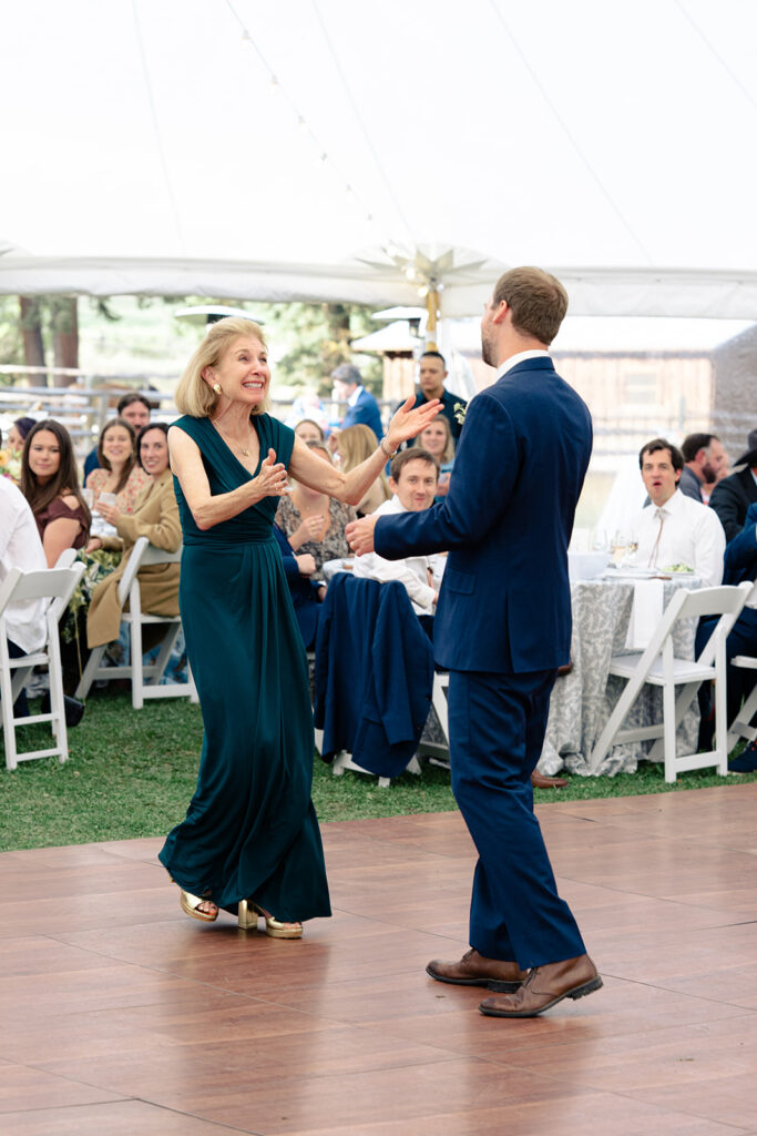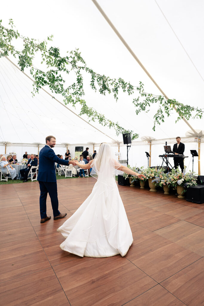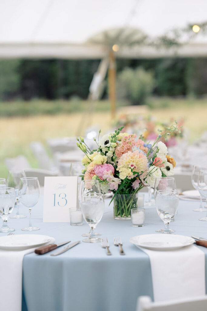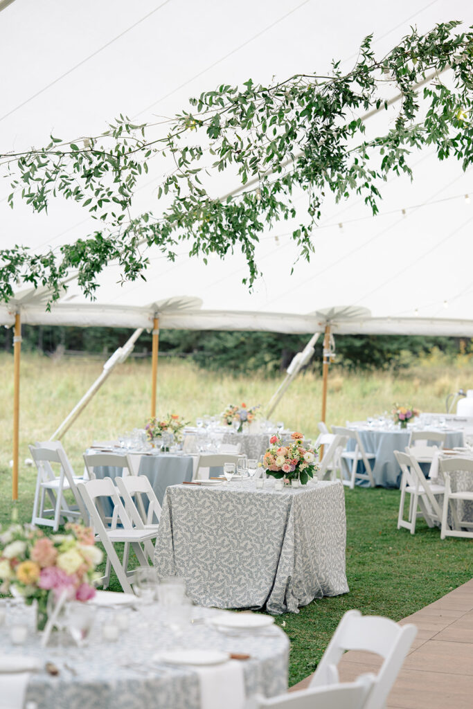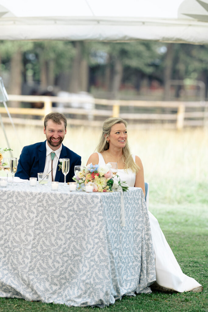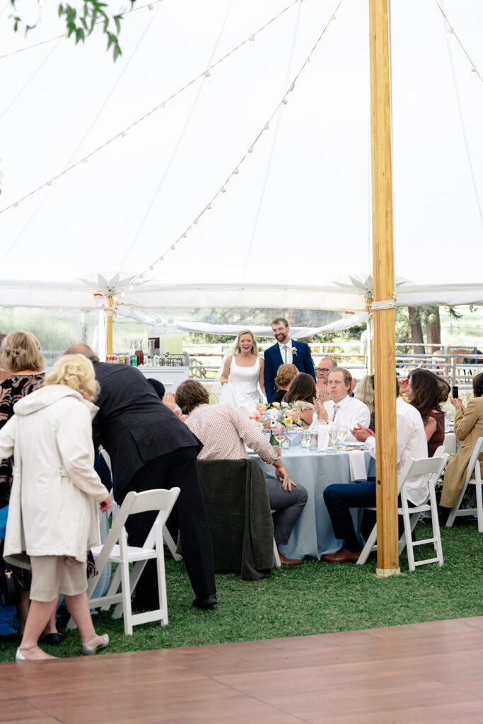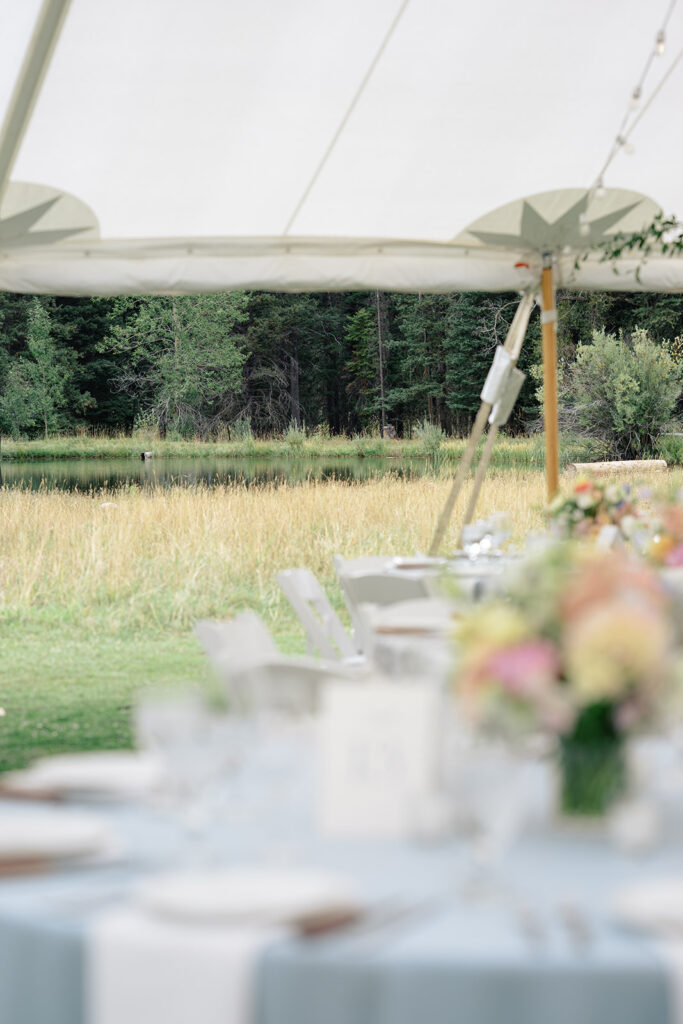 The reception was in a large field by a small pond. Tucked in just behind the corrals! It was a stunning location for their tented reception and dancing!