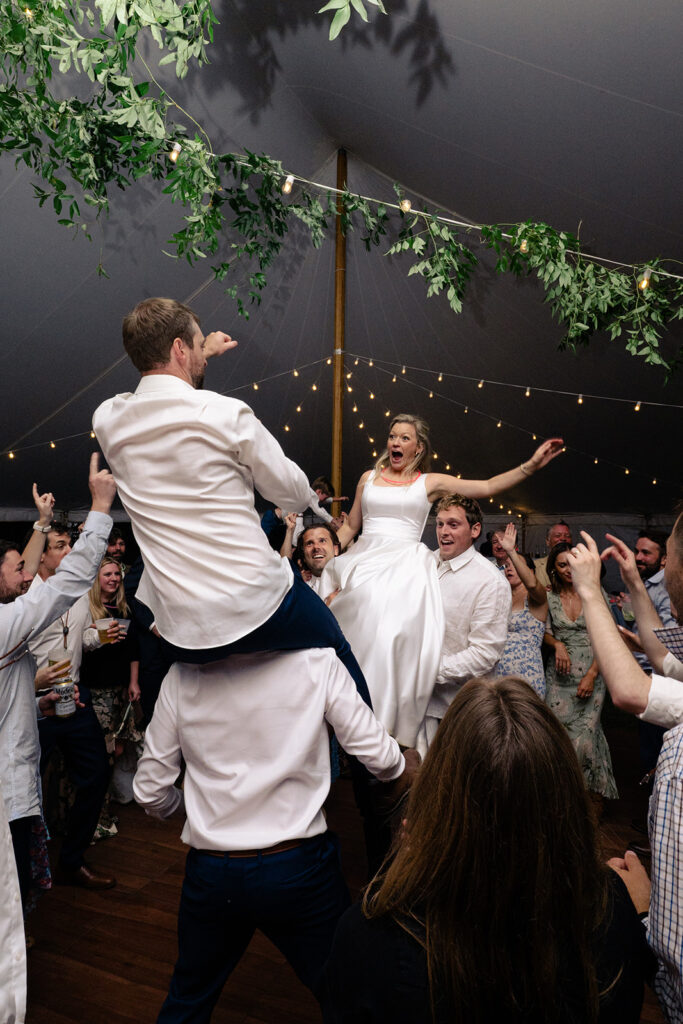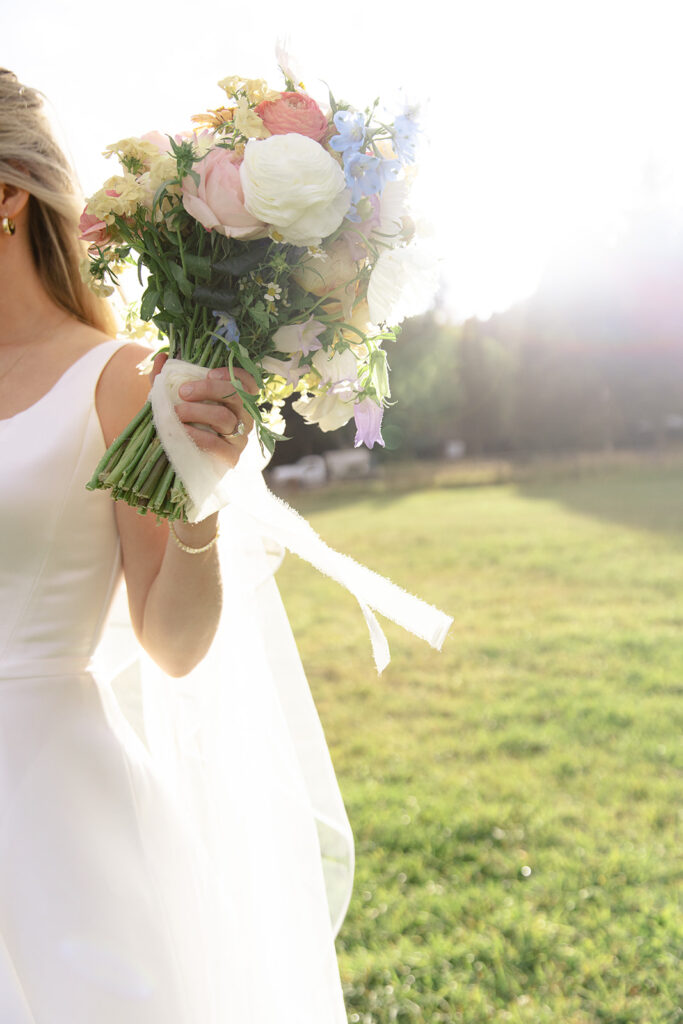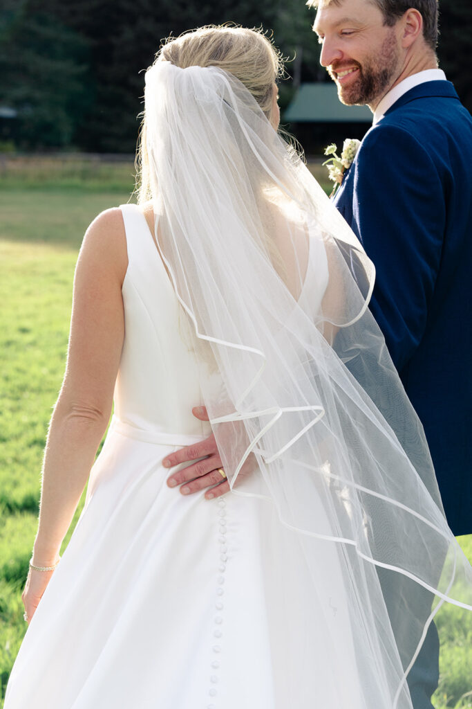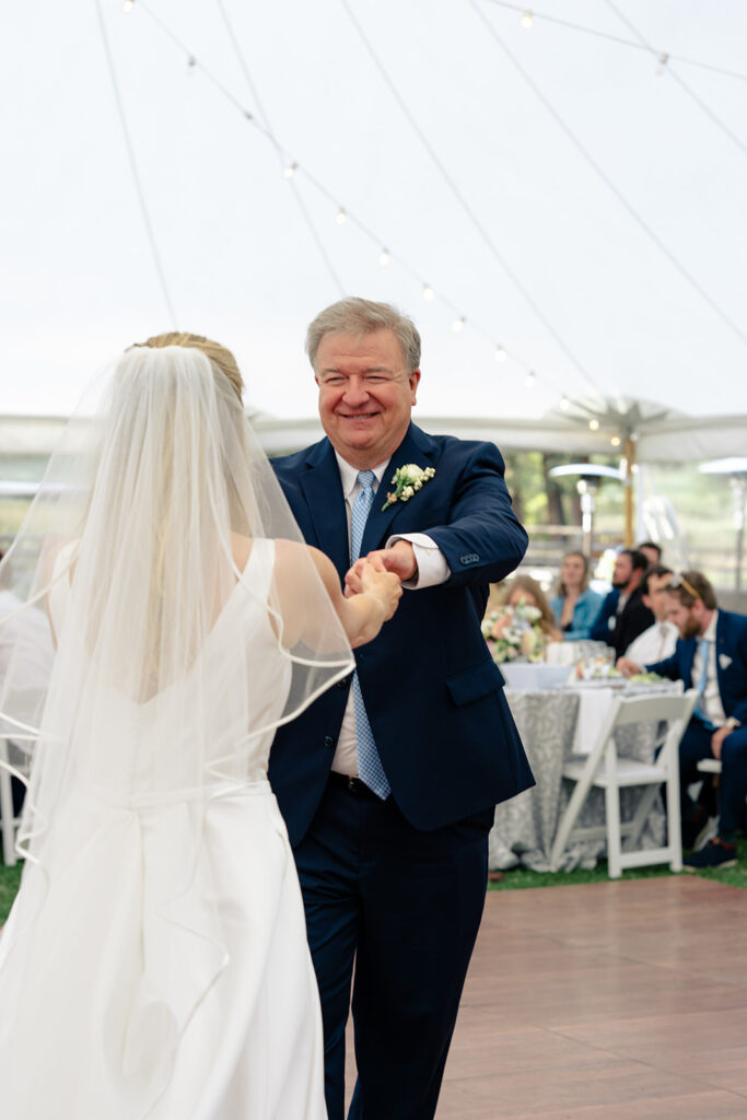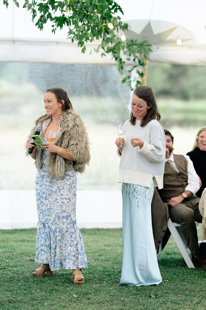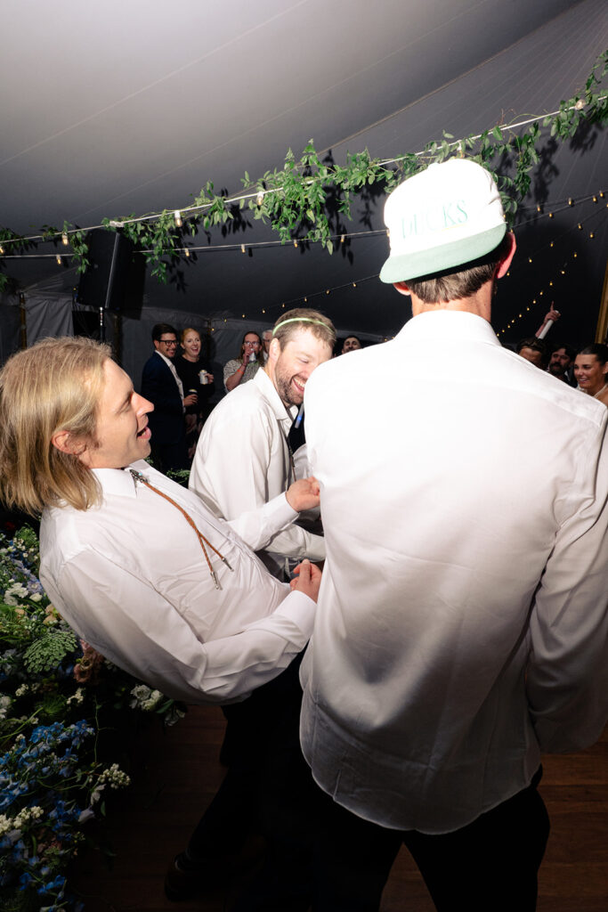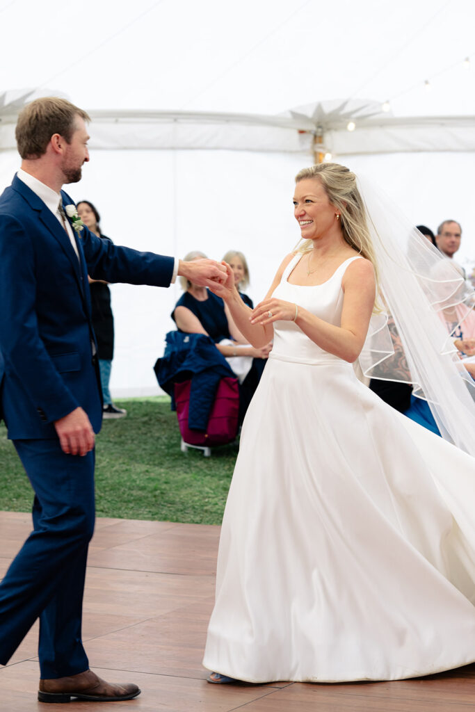 The reception was in a large field by a small pond. Tucked in just behind the corrals! It was a stunning location for their tented reception and dancing!