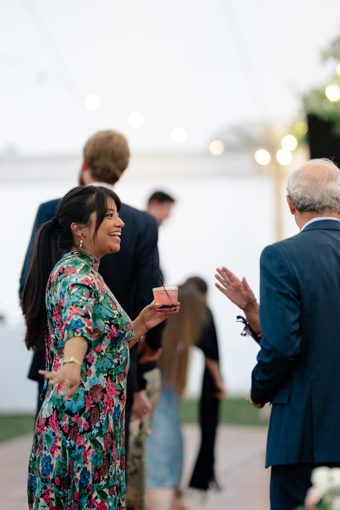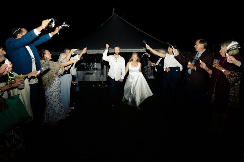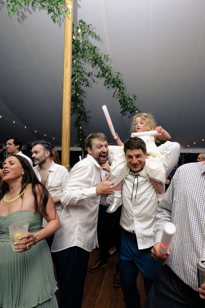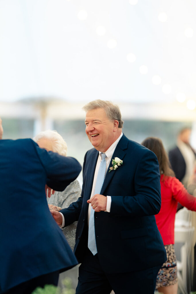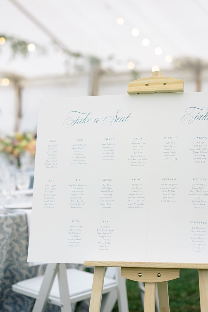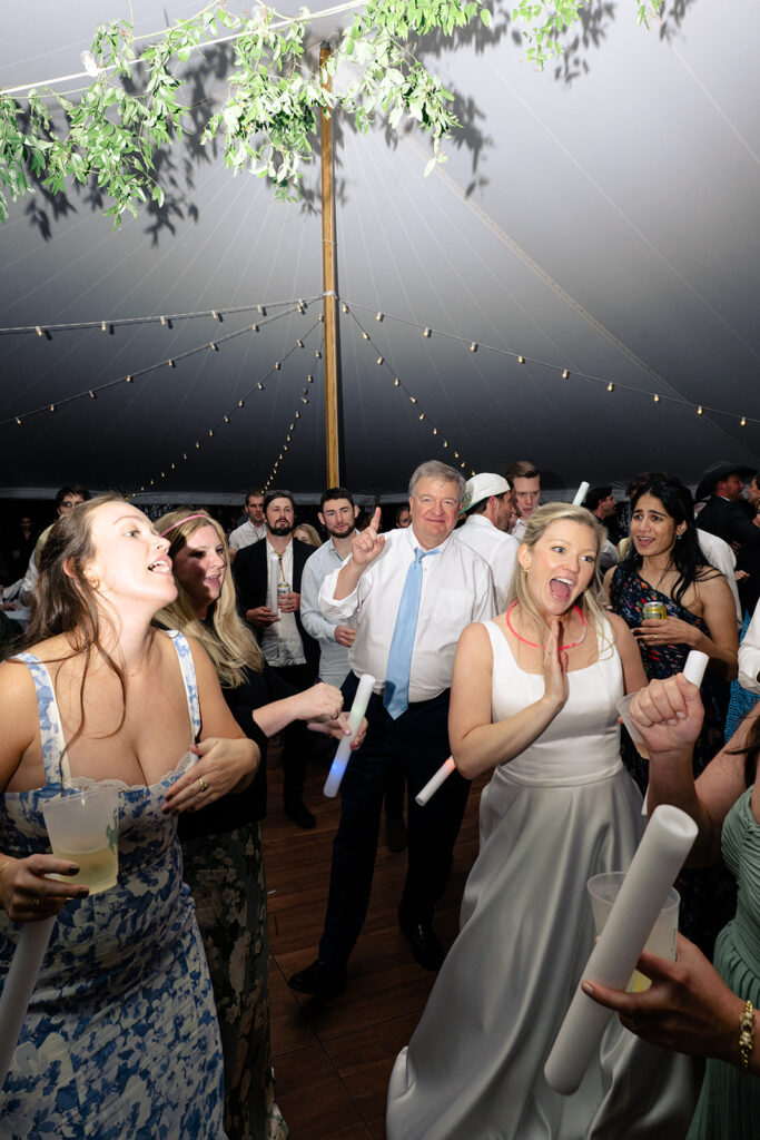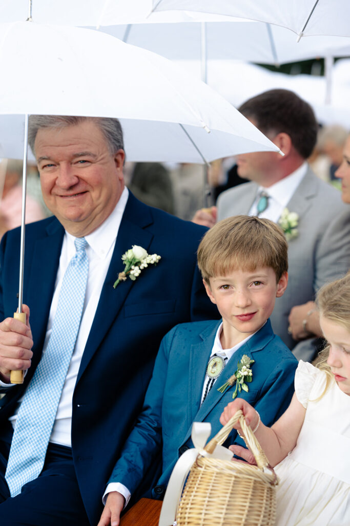 Because the rain was stil drizzling after the ceremony, guests were directed to the reception tent rather than the barnside cocktail hour. It turned out perfect though because the sun came out and guests were able to enjoy the field and watch the horses being lead out to pasture!