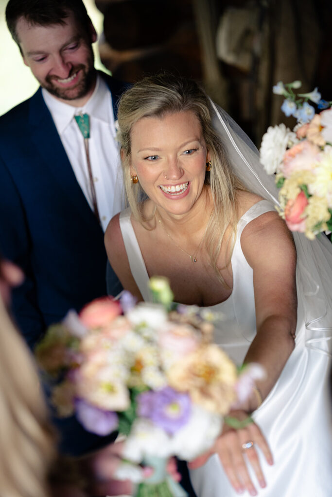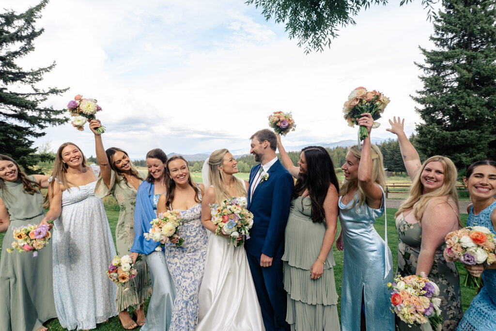 Ellen and Jackson chose a local wedding planner to be lead of their Team. Elizabeth of In Any Event is one of our best planners in the area and per her usual, she did an excellent job organizing and curating the wedding they dreamed of. Florals were designed by Marigold JH and Catering was with Street Food. DJ Joe Rudd kept the vibes going all night and hair and makeup was done by the talented Stephanie of Teton Beauty Collective